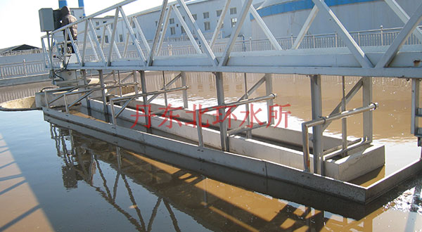 為丹東明珠紙來設(shè)計制造的周邊傳動半橋吸泥機