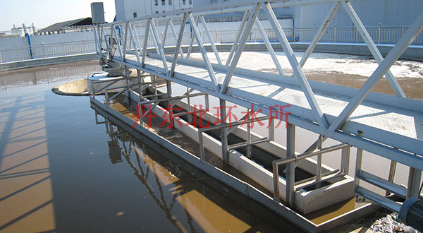 為丹東明珠紙來設(shè)計(jì)制造的周邊傳動(dòng)半橋吸泥機(jī)