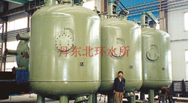 為湘鋼設計制造的HPL型除油過濾器,該過濾器的濾料為核桃殼