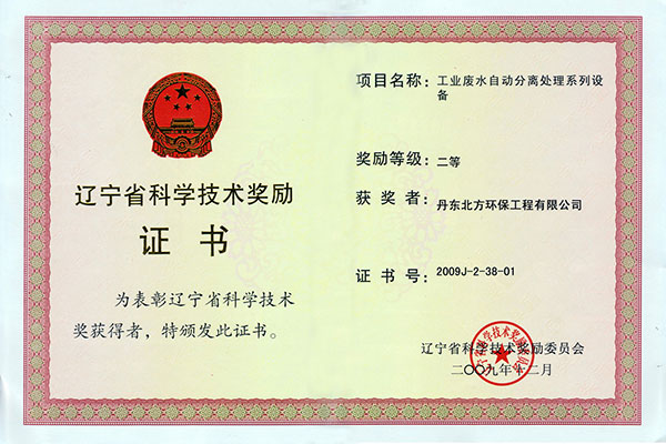 省科技進(jìn)步二等獎(jiǎng)證書
