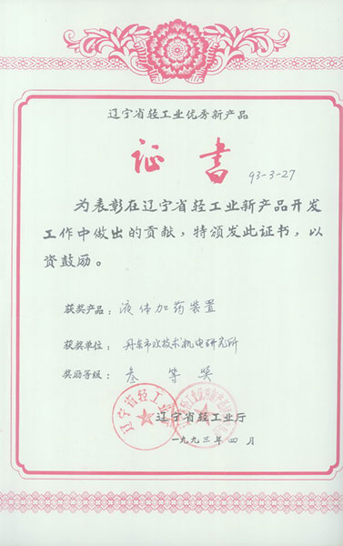 液體加藥省三等獎(jiǎng)